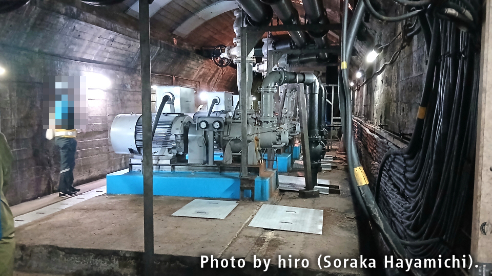 水抜きポンプは、両端部では3基ずつ、中央部は更にたくさん設置。
